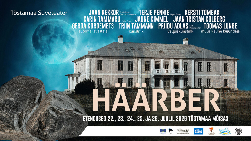 Etenduse „Häärber“ piletid 22., 23., 24., 25., 26. juuli 2026: https://www.piletilevi.ee/piletid/NLWXUABYKY/suvelavastus-haarber-tostamaa-moisas